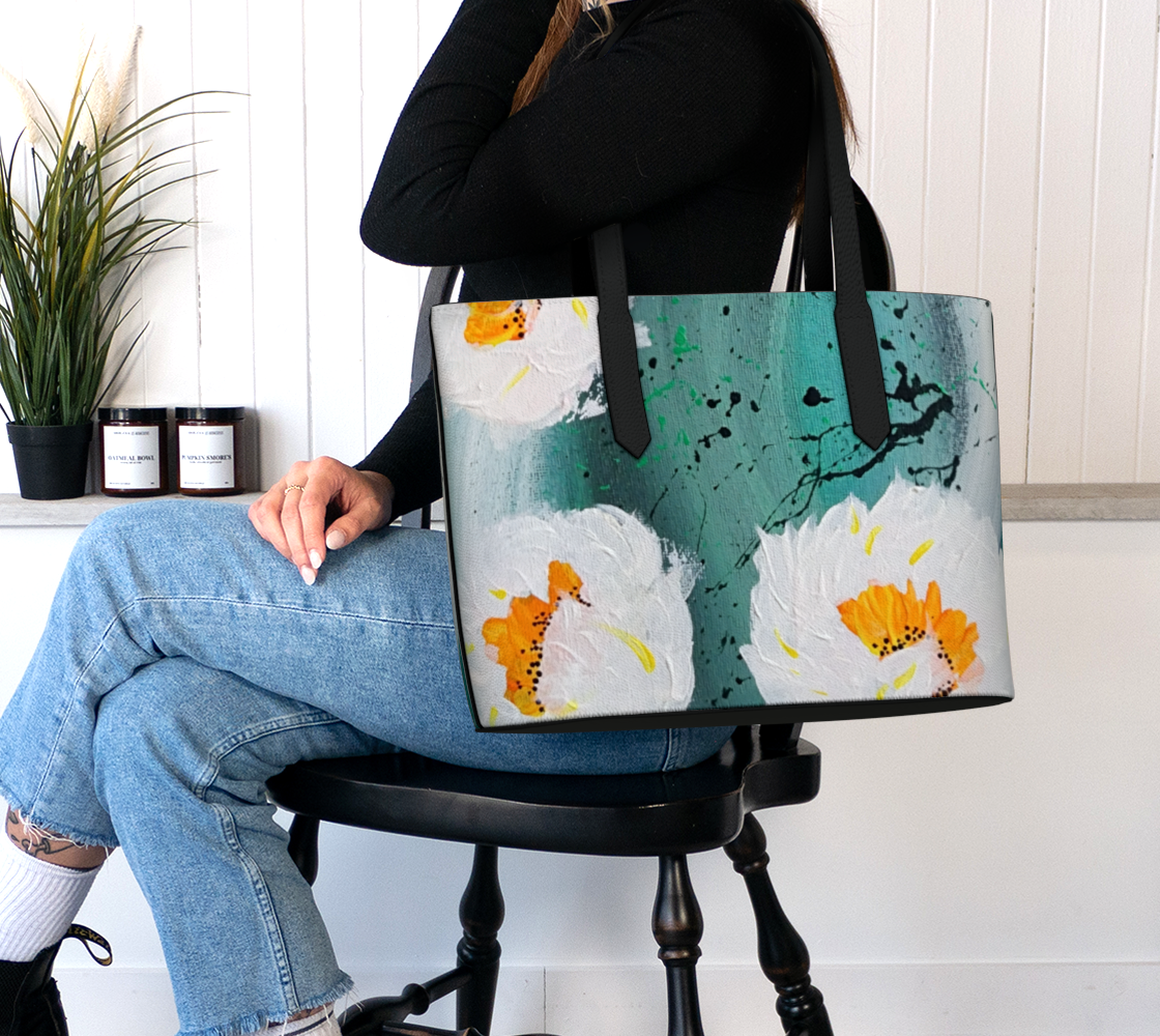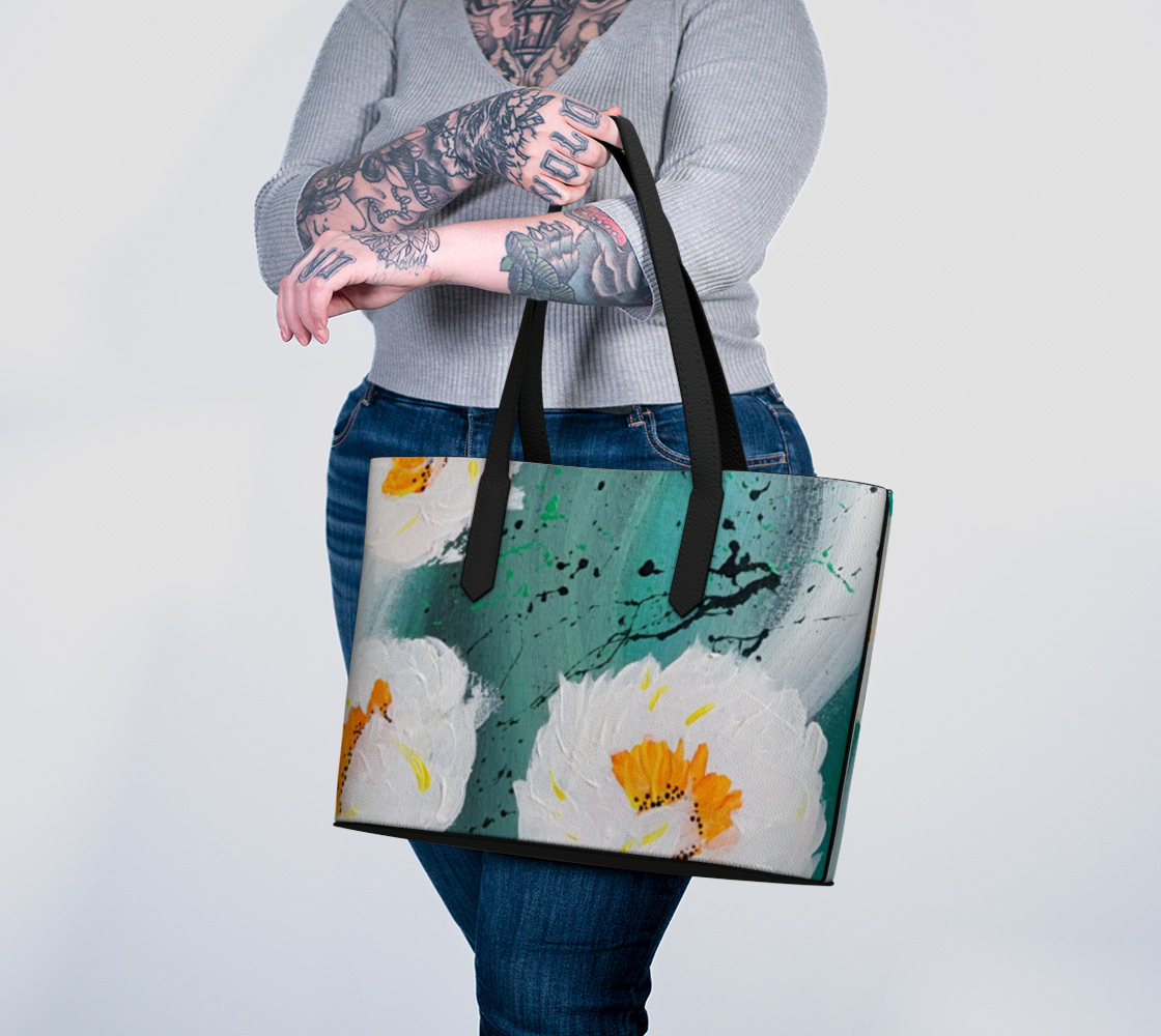 School days, vacation days, or business days, the printed vegan leather tote bag is perfect for everyday! Custom made from textured vegan pebble leather with inner pockets and professional finishing, vegan leather totes are large enough to fit a 16” laptop but not so large as to weigh you down. Featuring full color permanent print with UV inks, vegan leather tote bags are made on-demand just for you and are strong enough to keep up with your busy lifestyle.