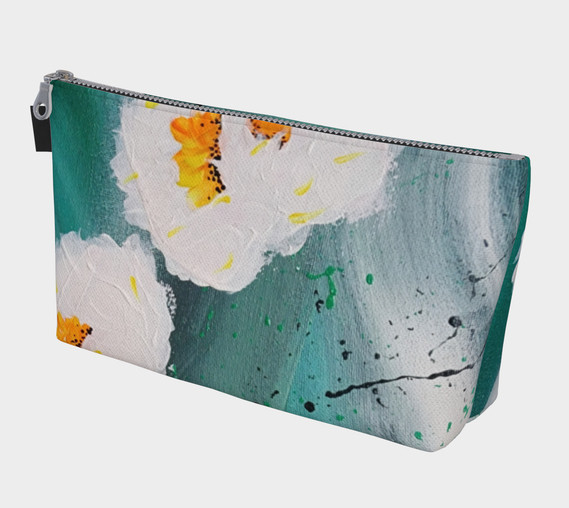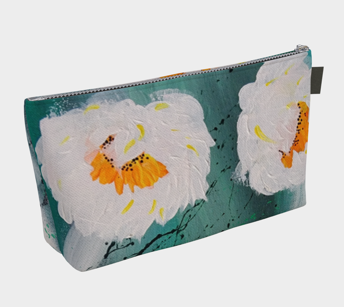 Denim lined zippered makeup bags featuring printed artwork. Made from durable canvas with ykk zipper and inner pocket, there’s many ways you can use your printed makeup bag.