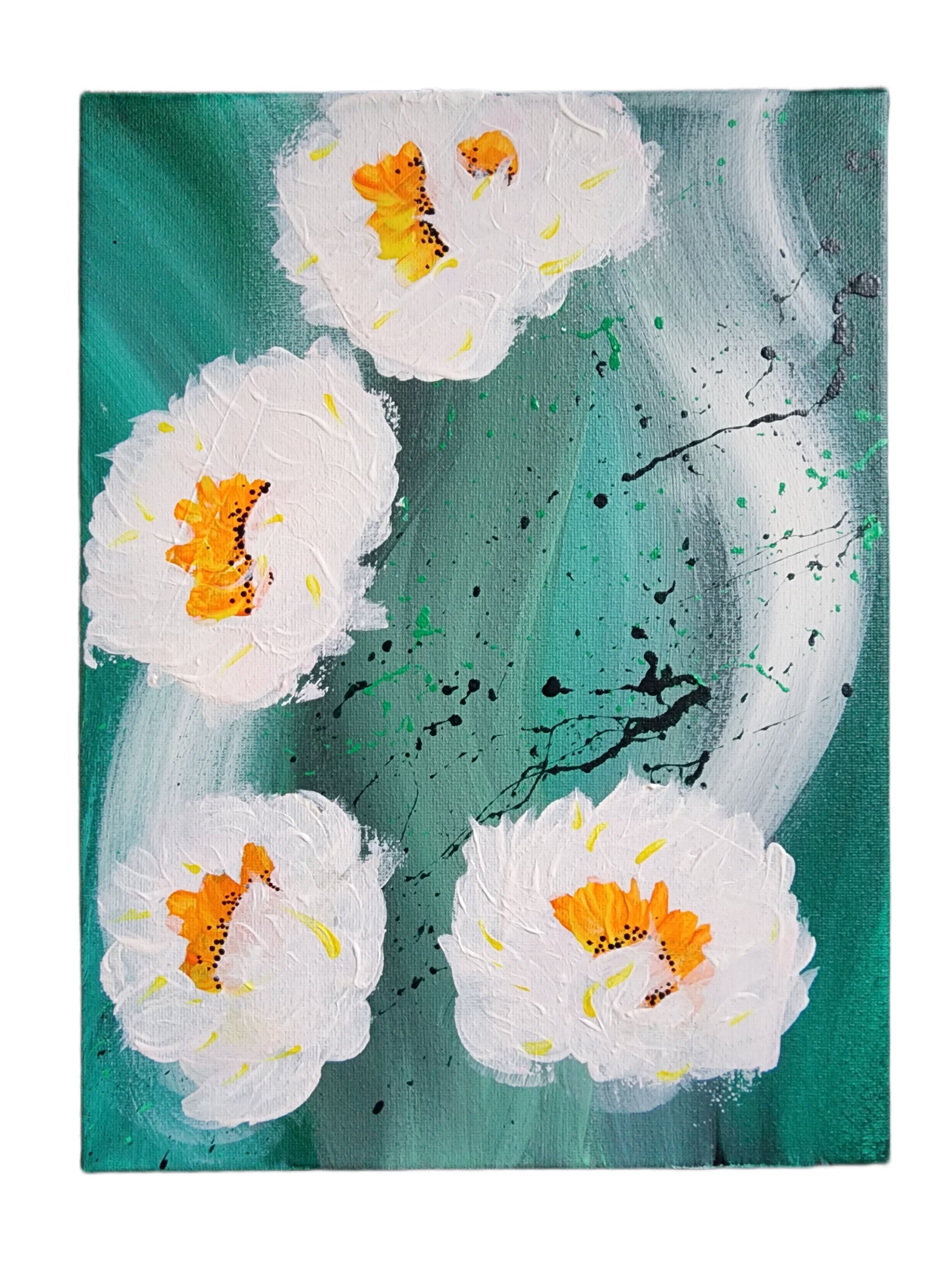 Modern, Abstract botanical art. Acrylic on 9x12 stretched canvas.
